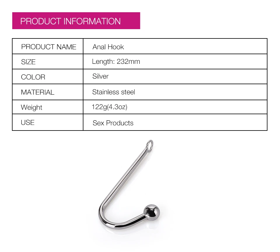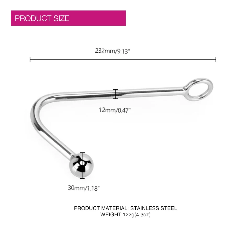 • Single Curved Stainless Steel Anal Hook Butt Plug Women's Bondage Gear for Adult Sex Juguetes Sexuales and Sex Toys