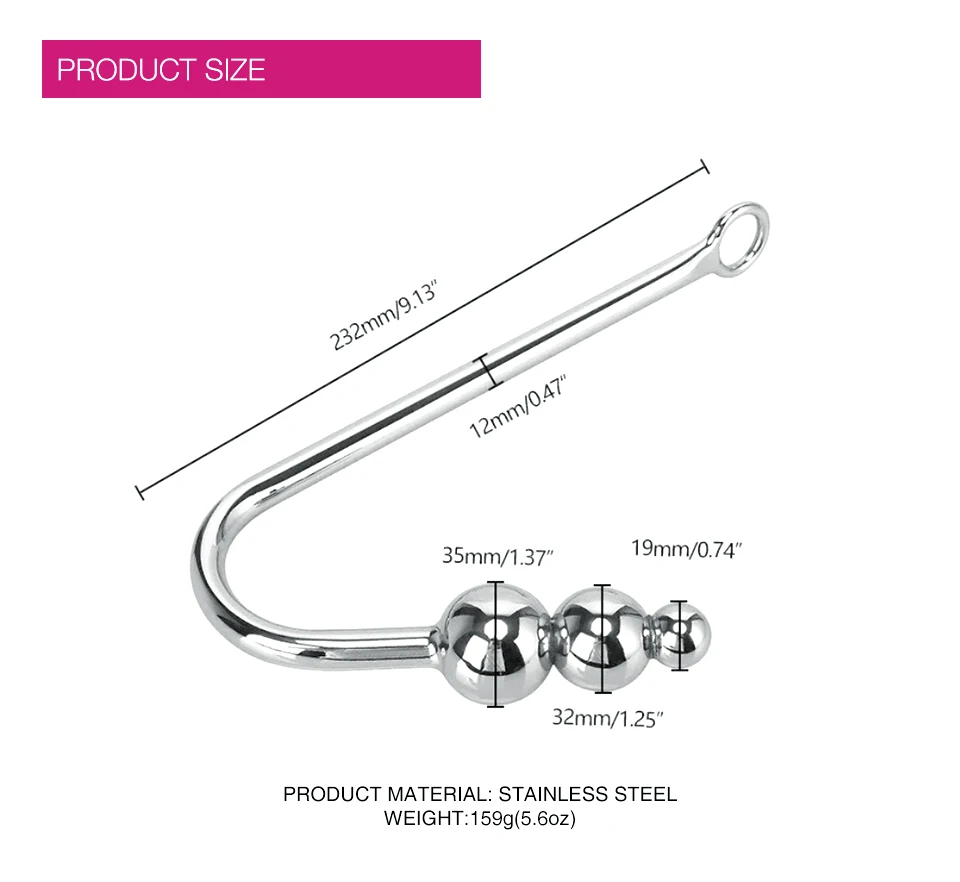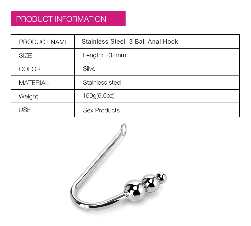 • Stainless Steel Anal Toys for Men and Women 3 Balls Anal Hook and Bondage Gear Butt Plug Adult Sex Juguetes Sexuales